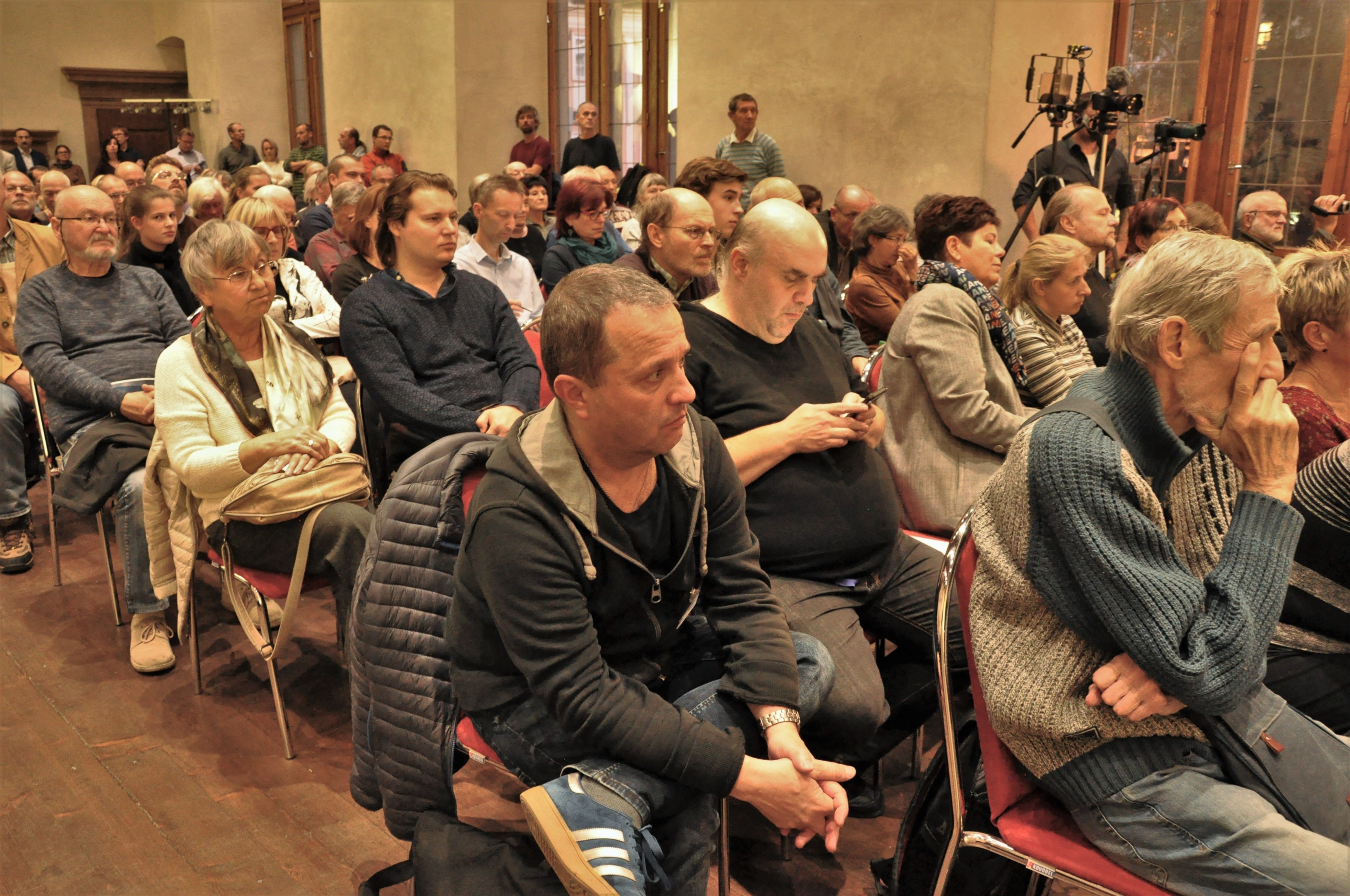 Ve středu 3. října 2018 od 18:00 hodin proběhl ve Velkém sále pražské Novoměstské radnice diskusní večer na téma „Co můžeme udělat pro polistopadovou demokracii“. Debatu uvedl předseda KOD Bohumil Doležal. V panelu diskuse vystoupili prof. RNDr. Libor Grubhoffer, bývalý rektor Jihočeské univerzity, poslanci Parlamentu ČR Miroslava Němcová a Miroslav Kalousek, evangelický farář a bývalý synodní senior Českobratrské církve evangelické Joel Ruml a šéfredaktor FORA 24 Pavel Šafr. Přibližně 230 návštěvníků debaty přivítala starostka Prahy 2 a poslankyně PČR Jana Černochová. Foto: Hana Mahlerová